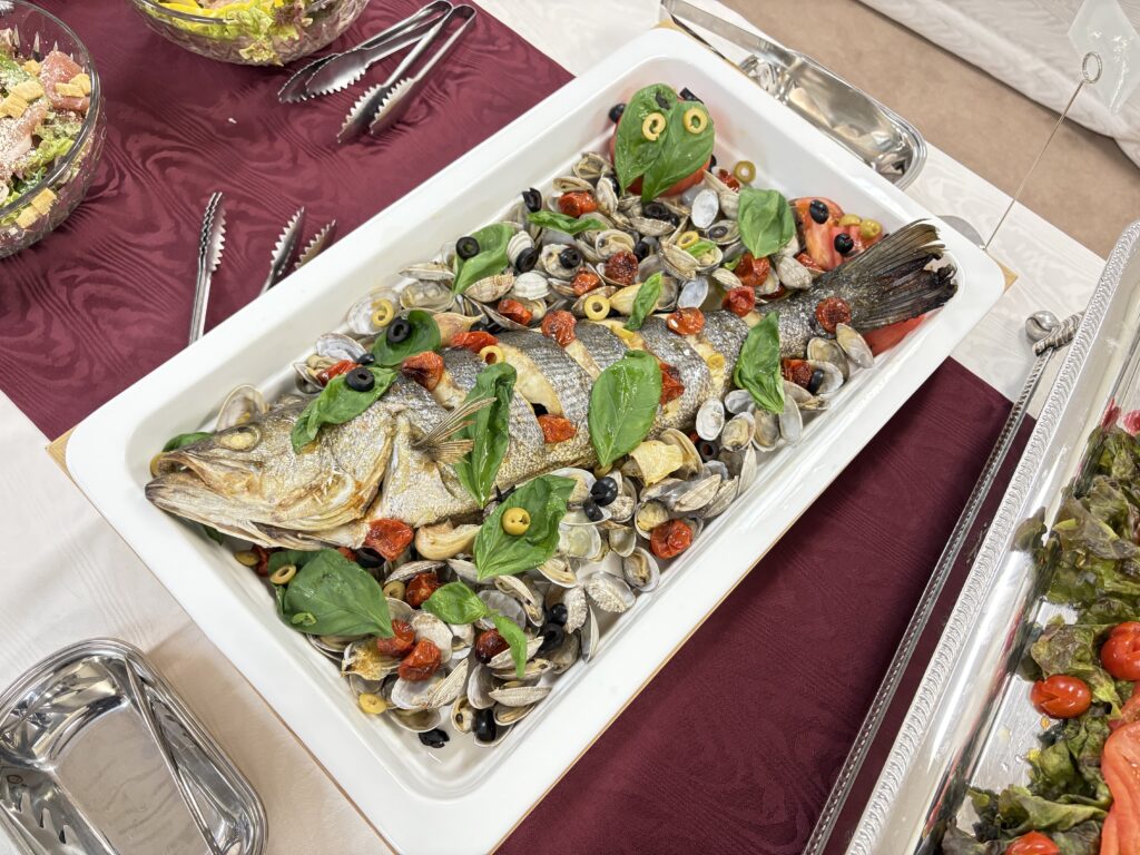 (松村指導のもと隊員の手で盛り付けられたスズキのロースト)