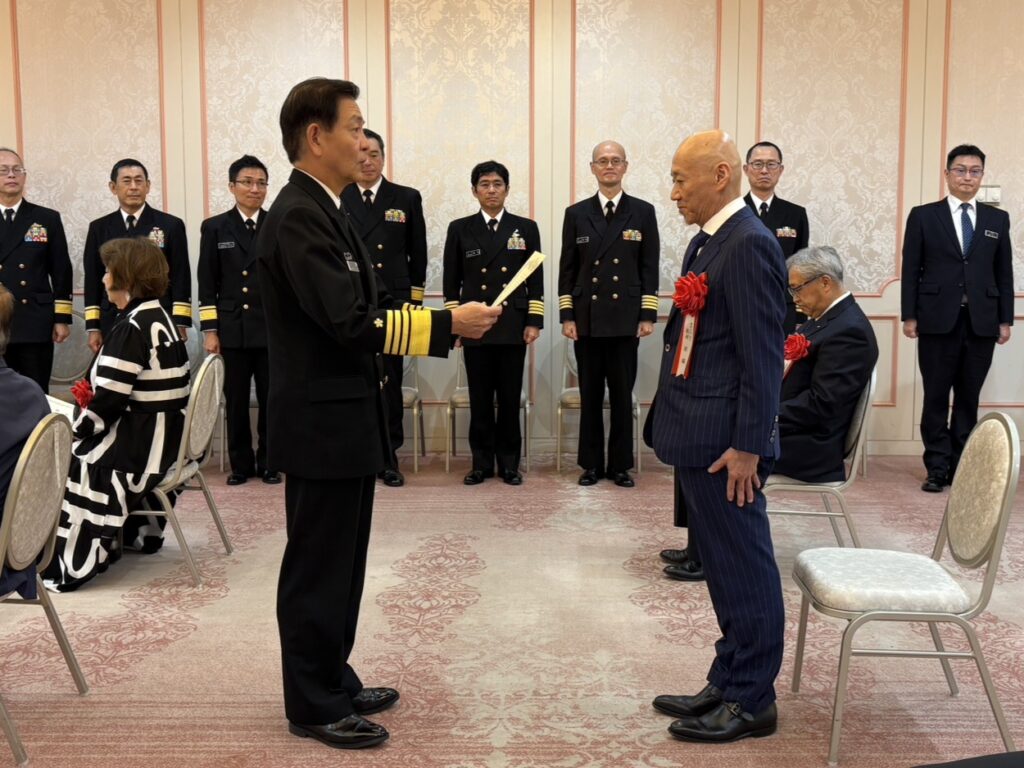 日を改め2025年11月14日、ホテルグランドビル市ヶ谷で行われた令和7年度自衛隊記念日において感謝状贈呈式に招待いただき、松村の長年の尽力を称え海上幕僚長より表彰いただきました。